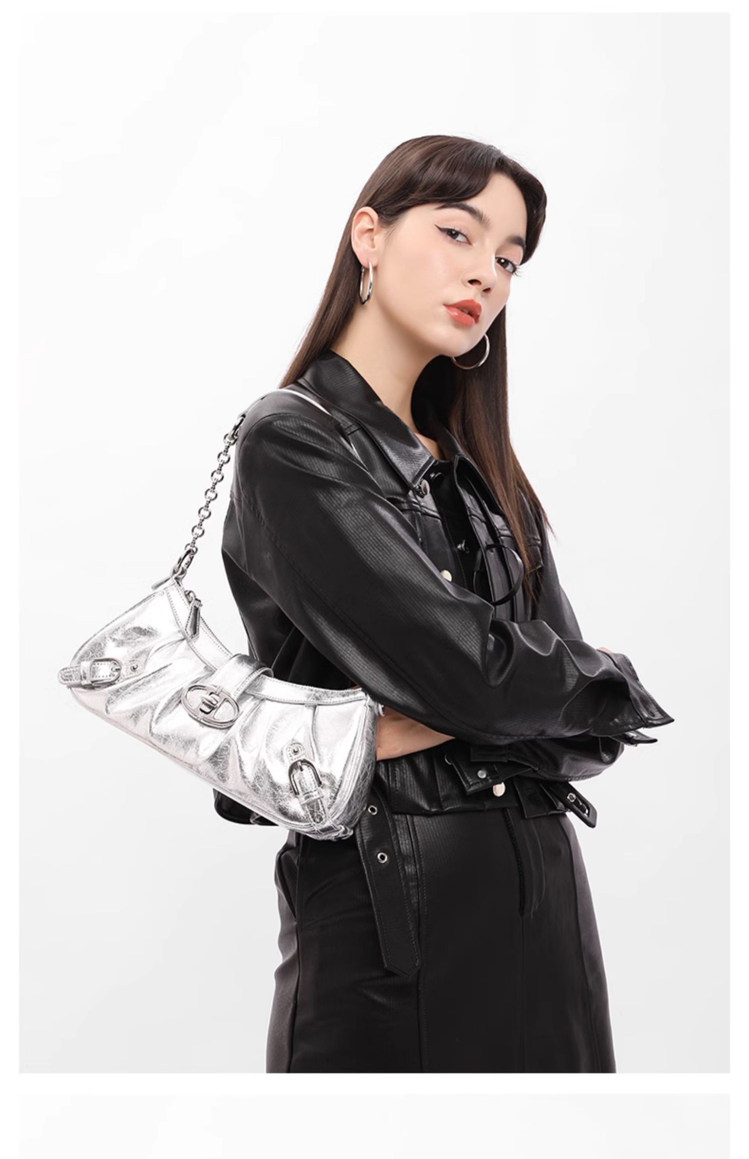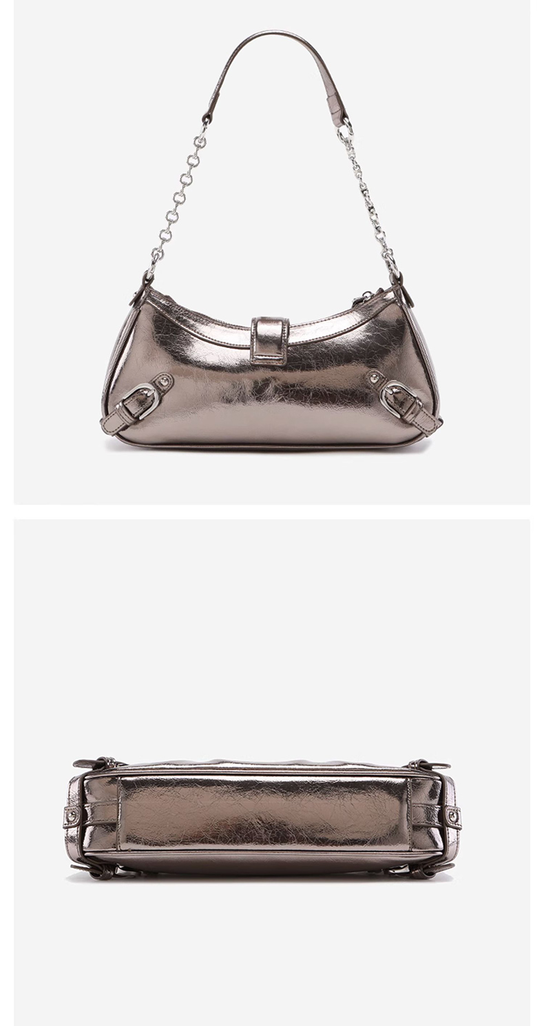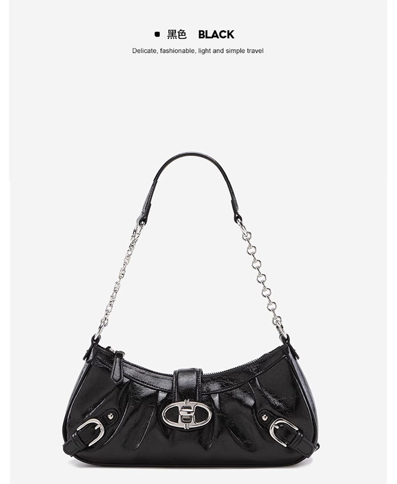 Wrinkled locomotive bag, oil wax cowhide shoulder bag, crossbody bag, chain shouder bag